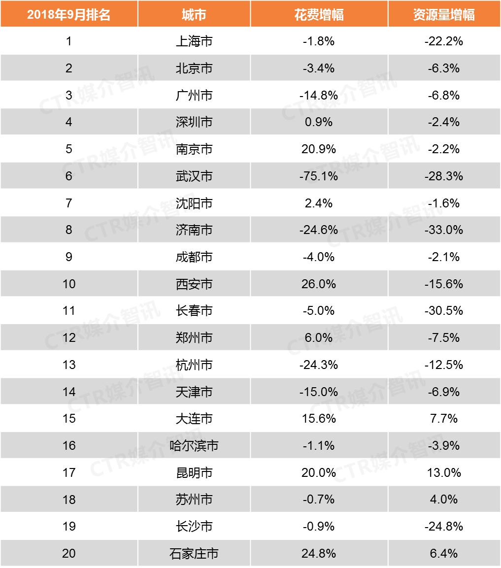 传统户外广告月度花费城市排名