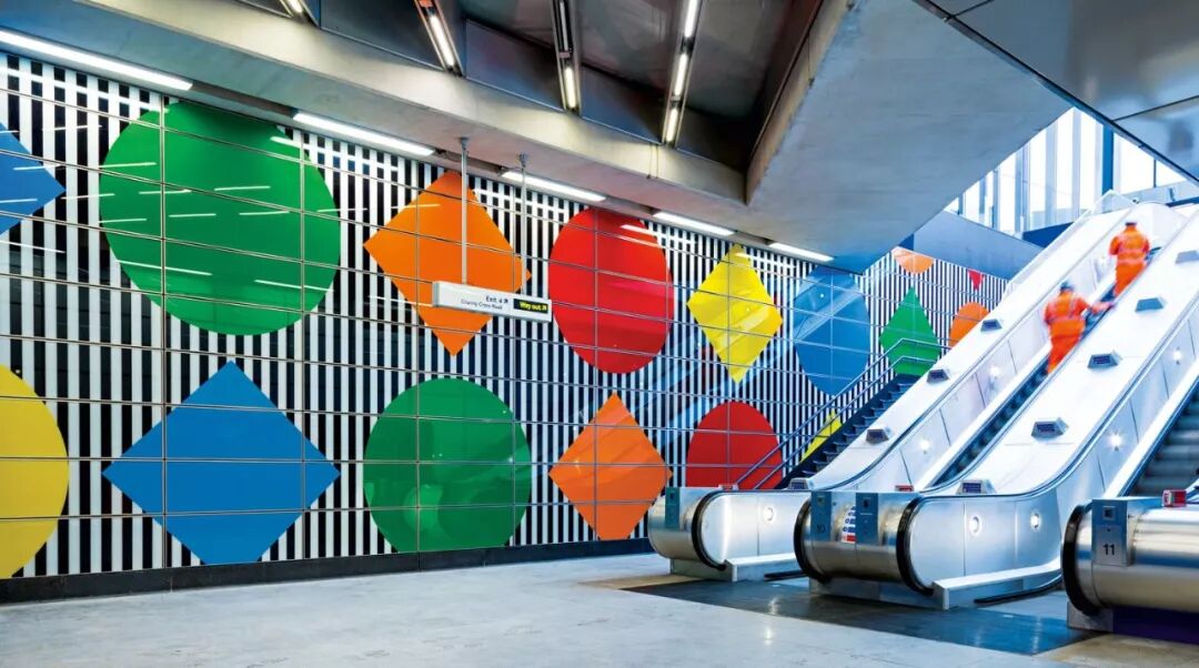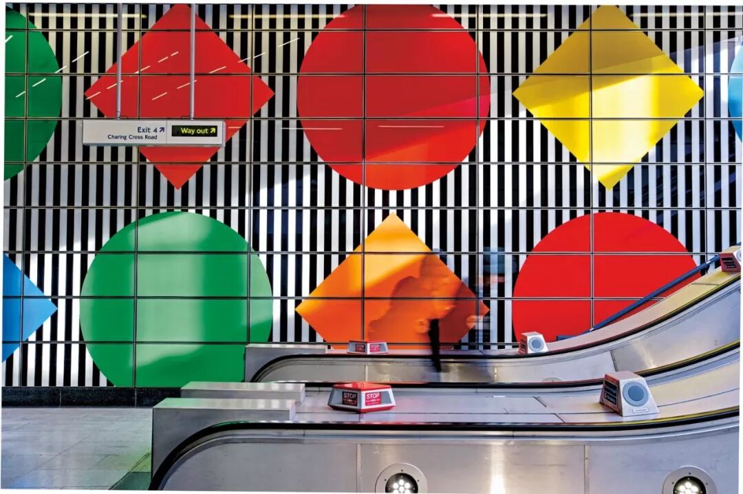 在去年新翻修的伦敦 Totenham Court Road 地铁站内,法国艺术家 Daniel Buren 受英国公共交通委员会委托,加入了自己的作品“Diamonds and Circles”。在这之前,这个有中央线和北线交汇、位于繁华市中心的地铁站,充斥的是 Eduardo Paolozzi 引人注目的马赛克壁画。当 2015 年传出消息,大约有 5% 的壁画将作为车站翻新的一部分而被拆除时,还引起过不小的争议。